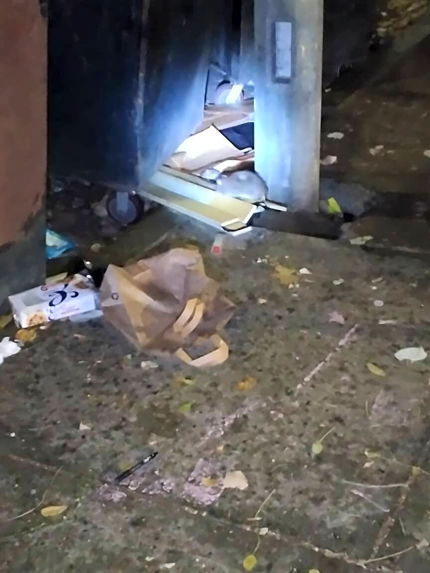 10 12 Bickford St, Jamaica Plain, Ma, 02130Garbage dumpsters are over loaded sometimes and rats are attracted to it. There is a huge rat hole in the sidewalk. There are several rats searching the dumpster overnight. I mean like a lot of rats over 10.