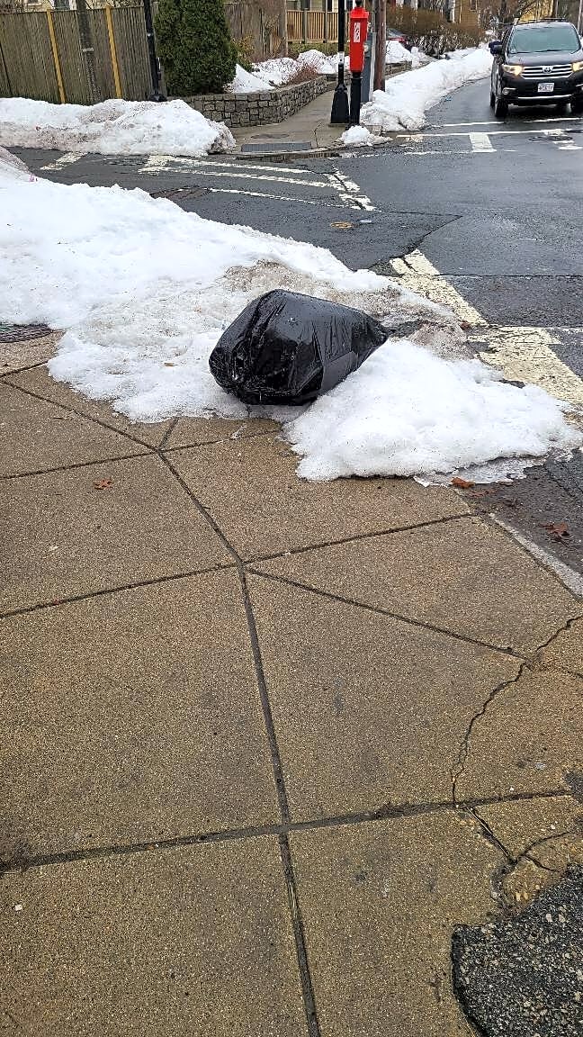 Intersection Of Atherton St And Amory St, Jamaica Plain, MaTrash, blocked crosswalk