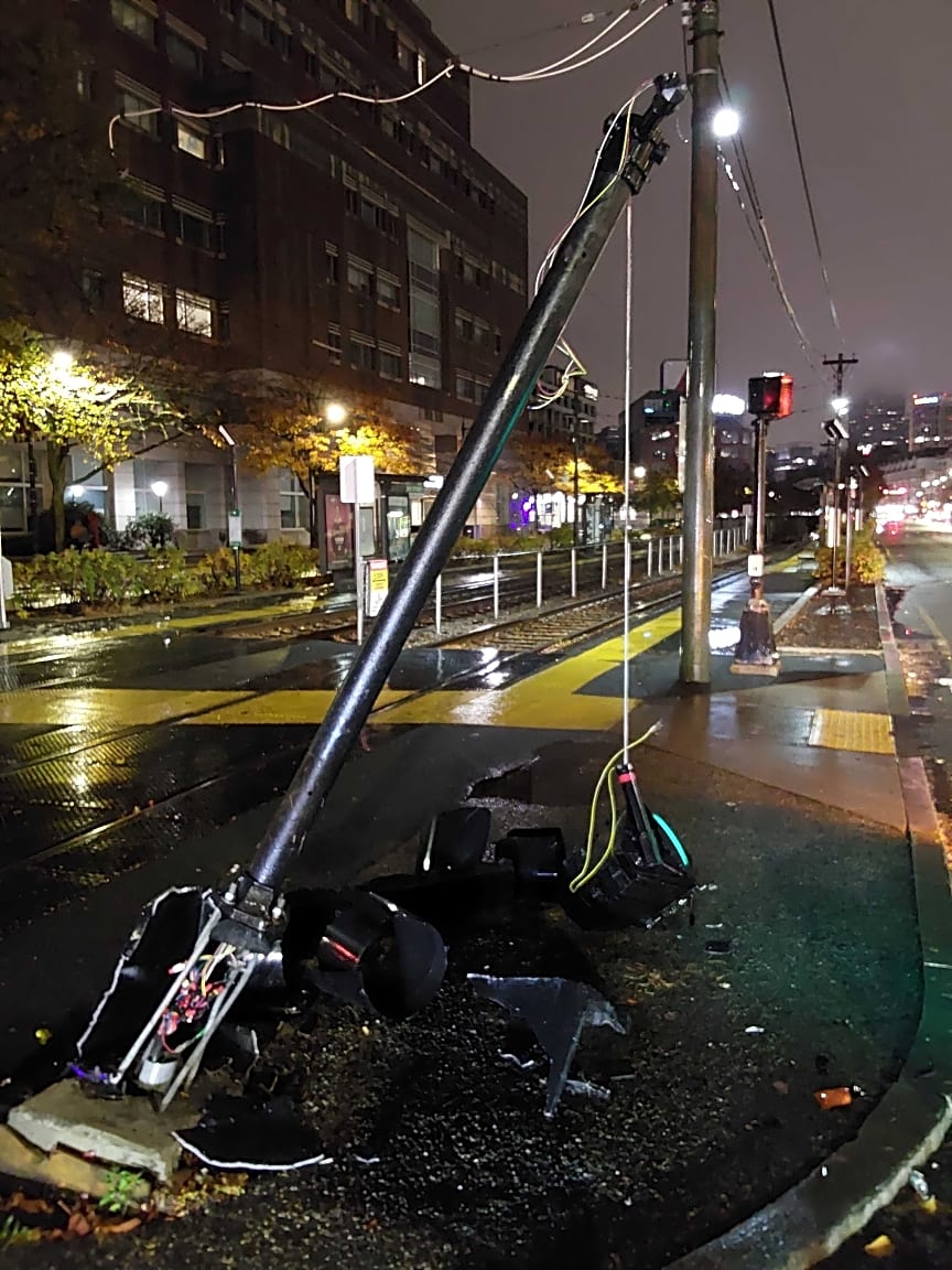 Intersection Of Traveler St And W Broadway And Albany St, Roxbury, Macall from BPD requesting MVA cleanup here | Type of debris: [Motor vehicle accident debris] Cars parked on the street: [No]