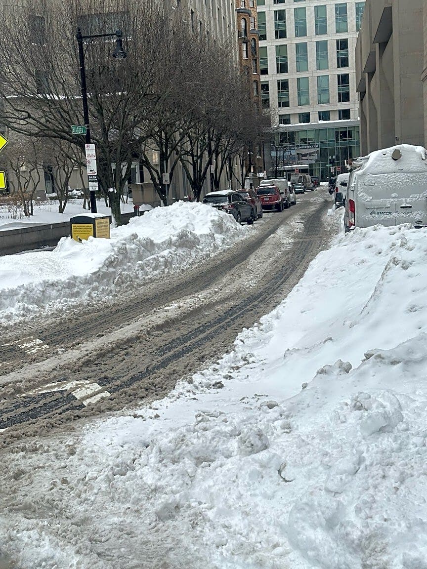 2 24 Edinboro St, Boston, Ma, 02111City hasn’t finished removing snow on Edinboro. Pedestrians get blocked in on all sides! The sidewalk on the other side is closed due to dangerous icicles. And only the middle is cleared on this side. Please come and clear the PUBLIC walkways so people can get around. Otherwise you are forcing pedestrians into the street! Lawsuit waiting to happen.