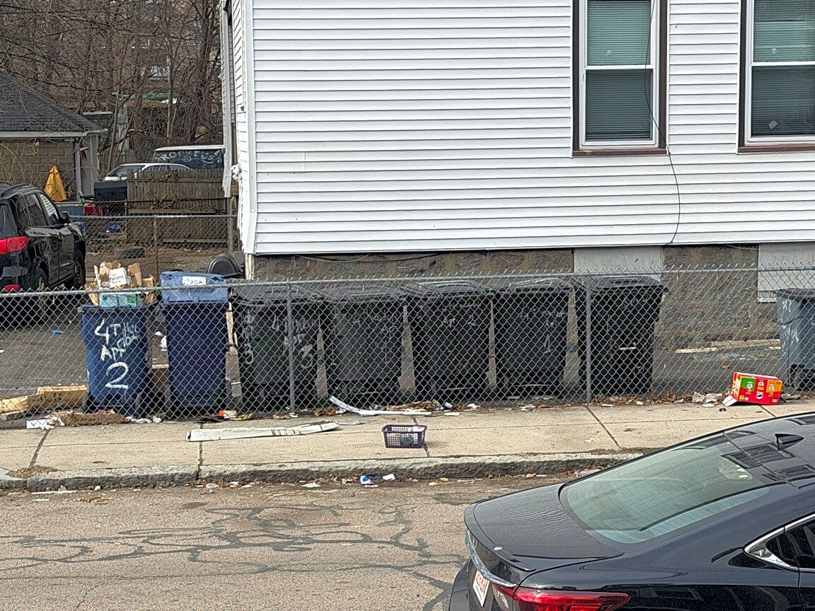 4 Theodore St, Dorchester, Ma, 02124This White House number 4-6 Theodore street, never properly dispose of their trash or properly close up their trash barrel to prevent it flying. It’s always all over the neighborhood.