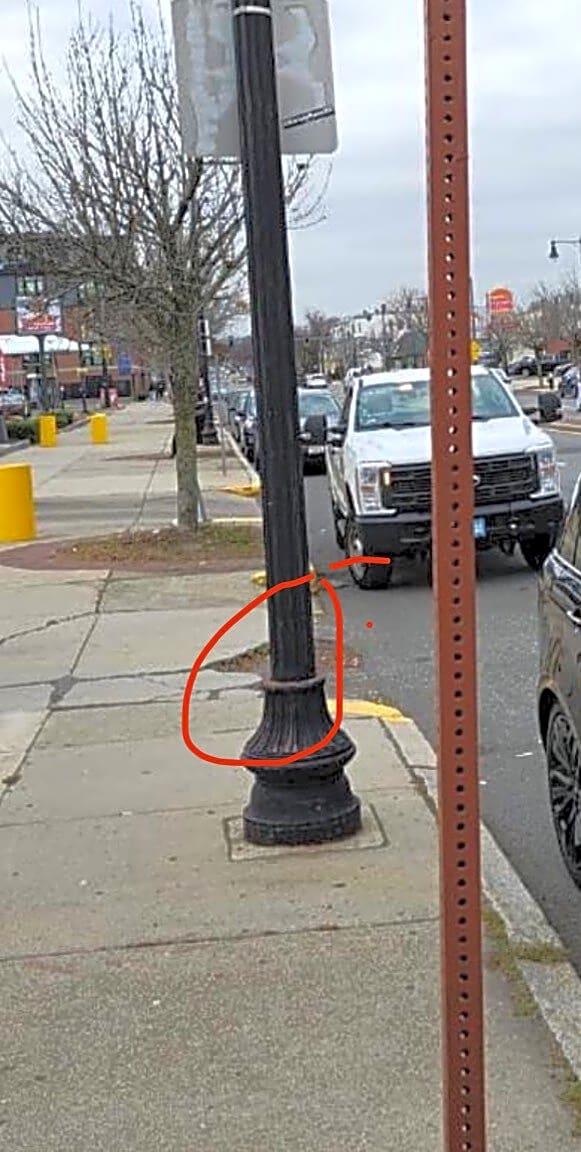 547 Talbot Ave, Dorchester, Ma, 02124Street sign falling loose, looks about ready to land on someone’s head.