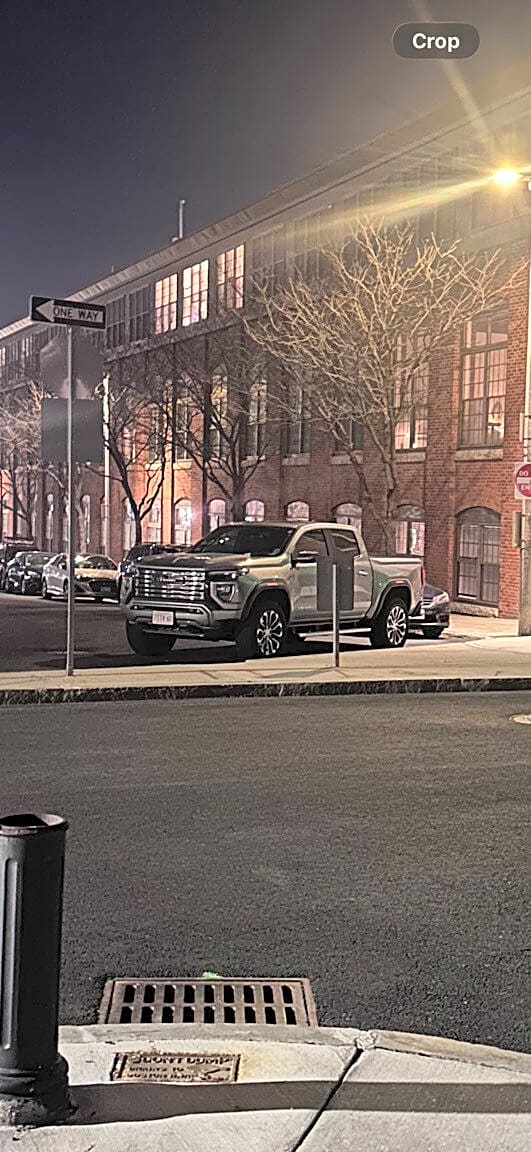 Intersection Of W Second St And B St, South Boston, MaVehicle is parked illegally. Safety hazard