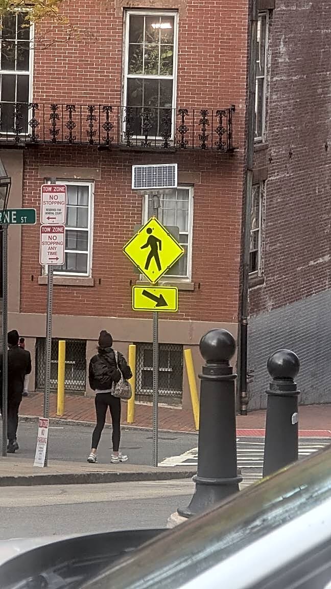 Intersection Of Bowdoin St And Derne St, Boston, MaSeveral lights out on flashing yield to pedestrians sign