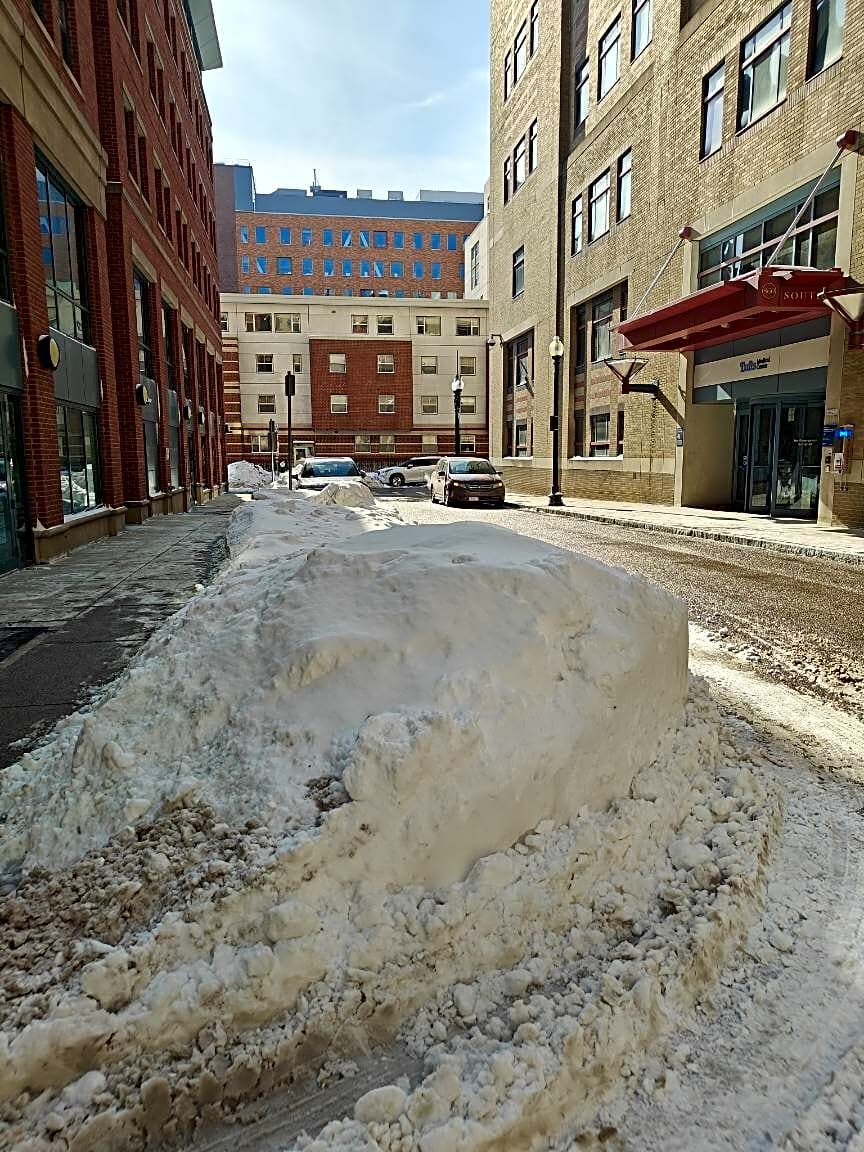 38 Ash St, Boston, Ma, 02111Snow mounds in back of Tufts medical and in front of daycare space. Causing lots of back ups. 28 and 38 Ash Street