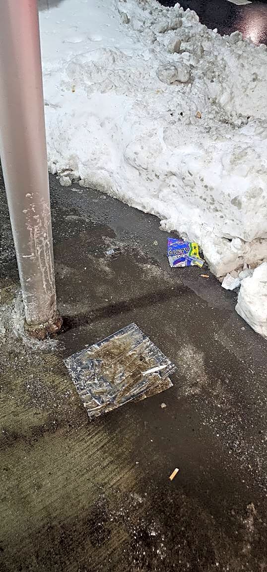 Intersection Of Massachusetts Ave And Albany St, Roxbury, MaLots of garbage at the bus stop at the corner of mass Ave and Albany