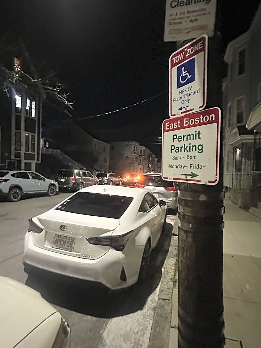279 Princeton St, East Boston, Ma, 02128Parked illegally in handicapped parking spot