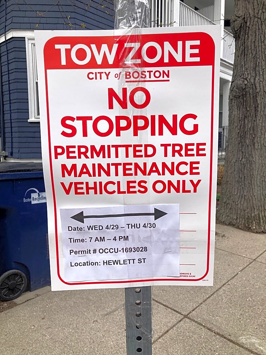 16 18 Hewlett St, Roslindale, Ma, 02131I live at 16-18 Hewlett St. This sign was posted on Friday 4/24, with the start date of this parking ban on 4/29. Less than one week is not enough time to know when to move a vehicle. What happens if folks are out of town and wouldn’t know if road work were to be done? I understand it’s only obligatory to give notice 48 hours prior to the ban, and this is more than that, but I still argue that’s not enough notice.