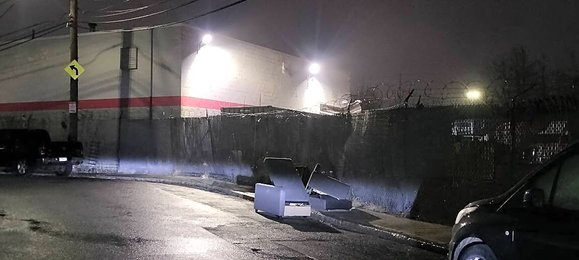 Couch left on sidewalk located adjacent to 24 Shetland Street