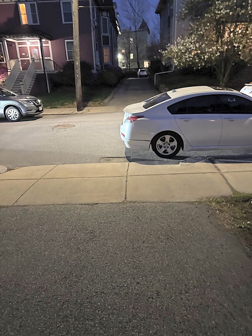 92 Dix St, Dorchester, Ma, 02122There is a white Acura sedan TL license plate 6BYY84 and it’s parked several feet past the edge of the sidewalk. As you can see in the photo there is no way i can get in or out if my driveway. PLEASE COME TOW THIS CAR ASAP AS I NEED TO LEAVE. Thanks!