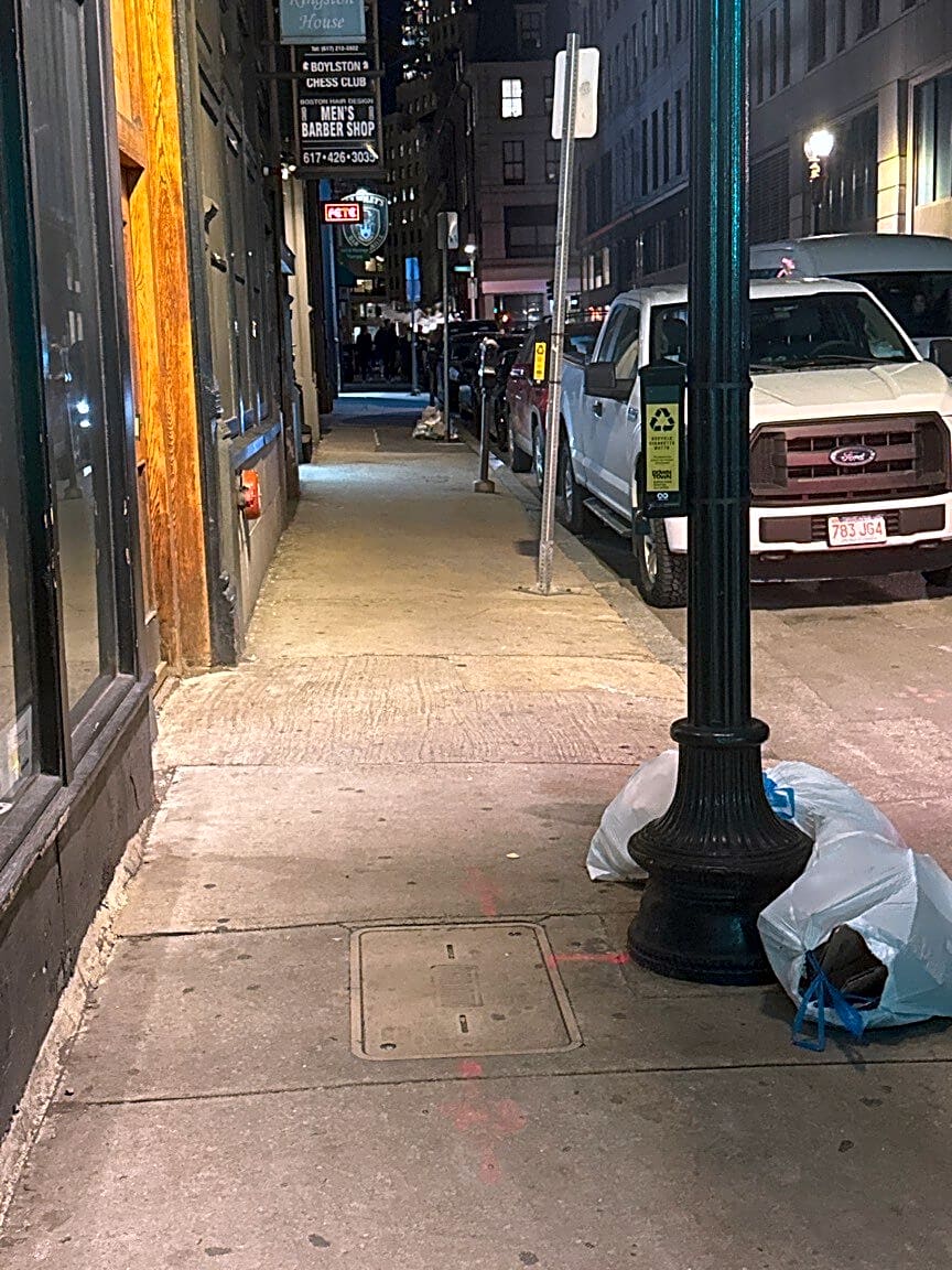 43 Kingston St, Boston, Ma, 02111Trash not collected on Friday. All of Kingston. Please collect before the snow storm.