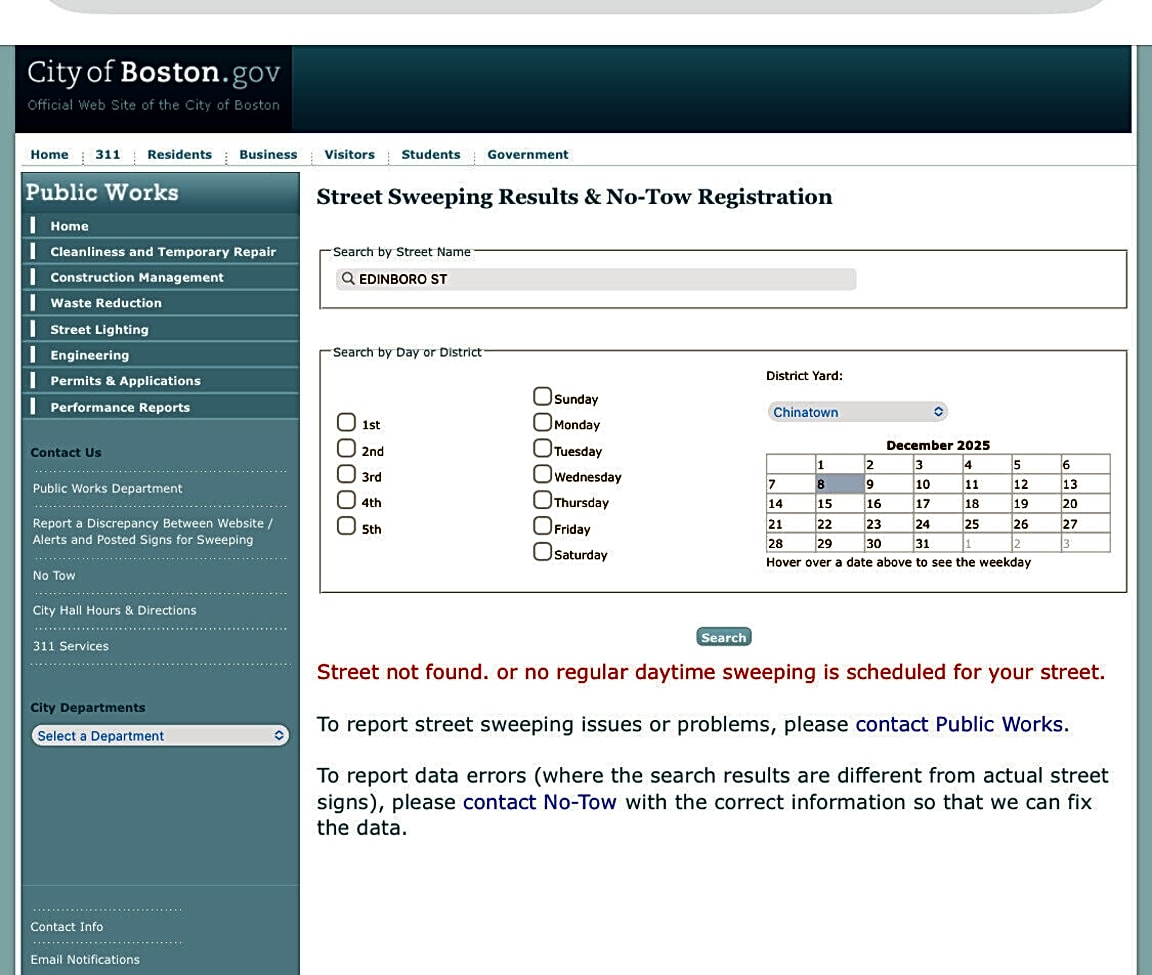 Street cleaning is on a normal schedule. More Information: https://www.boston.gov/departments/public-works/street-sweeping-city