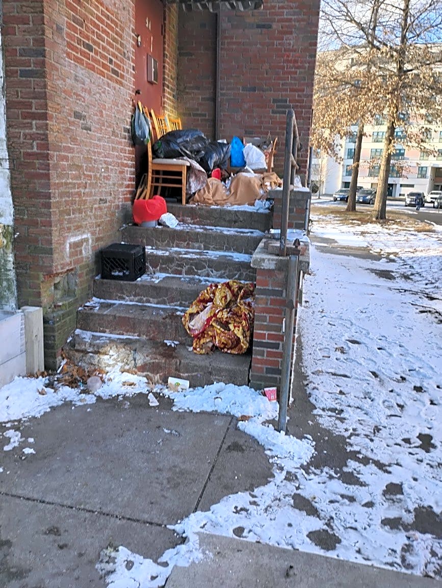 Intersection Of Warwick St And Windsor St, Mission Hill, Mahomeless camp and trash