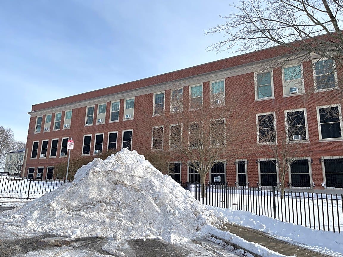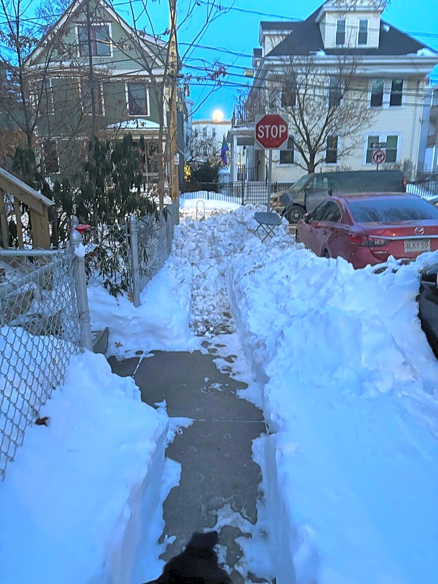 Intersection Of Bakersfield St And Morrill St, Dorchester, MaSnow piled high on residential sidewalk. No exit to street.