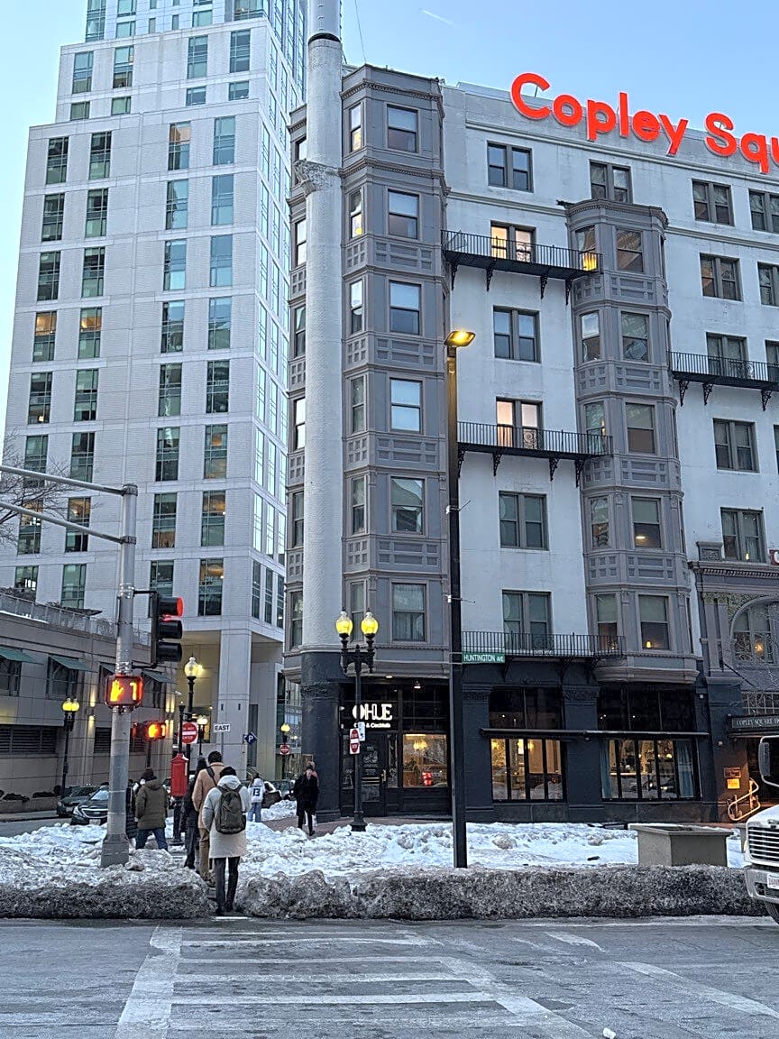 Intersection Of Stuart St And Massachusetts Tpke W, Boston, MaSnow removal needed at the crosswalk out front of the Cooley square hotel.