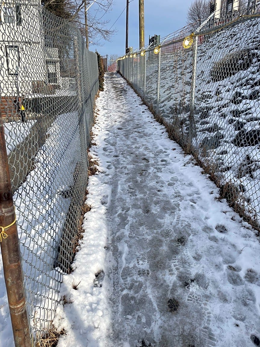 41 Huron Cir, Dorchester, Ma, 02124MBTA never shoveled. 3 days after snow, Huron path is a death trap