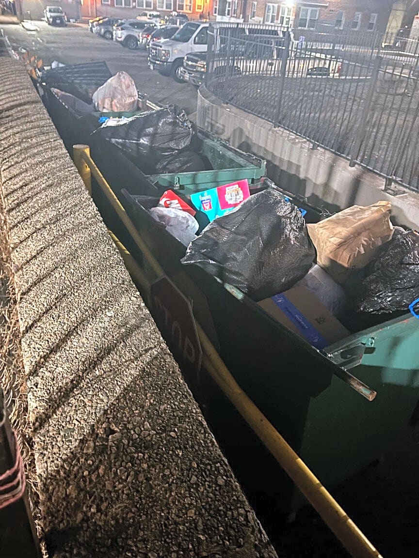 7 Bakersfield St, Dorchester, Ma, 02125No change after previous tickets this week. Please ticket again. Open, overflowing dumpsters.