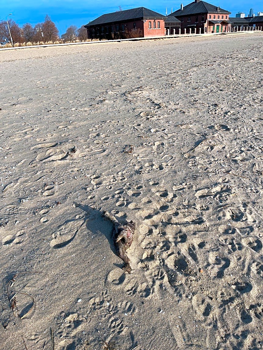 Multiple dead birds on beach