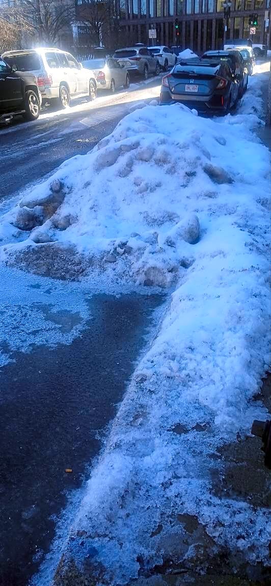 23 Vernon St, Roxbury, Ma, 02119Snow pile that still here beside an elderly building. Please have them removed from elderly parking. Thank you.