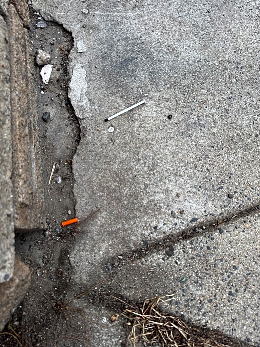 3-4 needles on sidewalk | Needle Quantity: [More Than Three] Property Location Type: [Public]