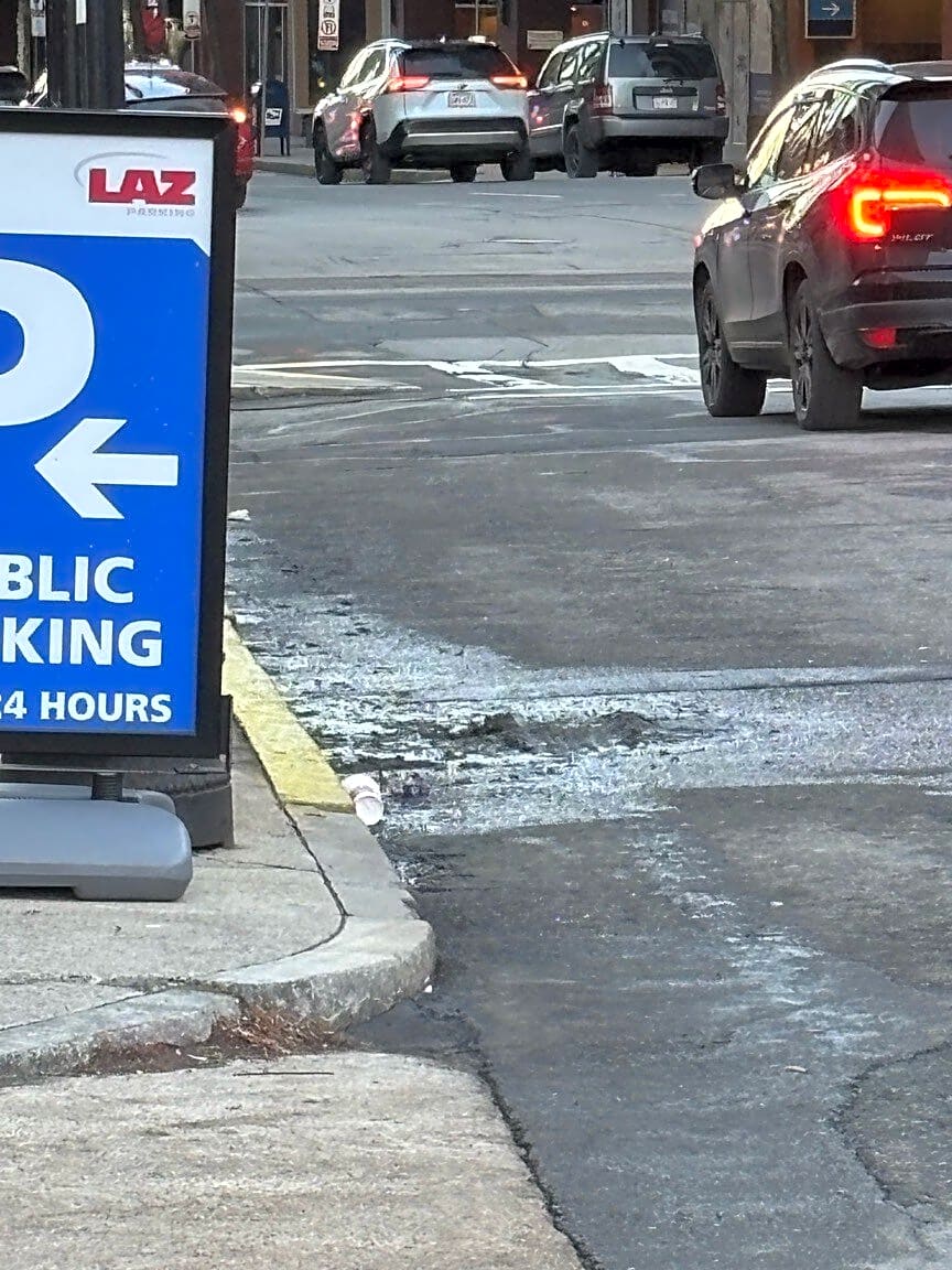 154 Stuart St, Boston, Ma, 02116Watched Revere hotel dump mess from cleaning machine on street yesterday afternoon. This morning the sludge is running down the left side of Charles St and it smells like sewer. From curb pictured to Stuart st light