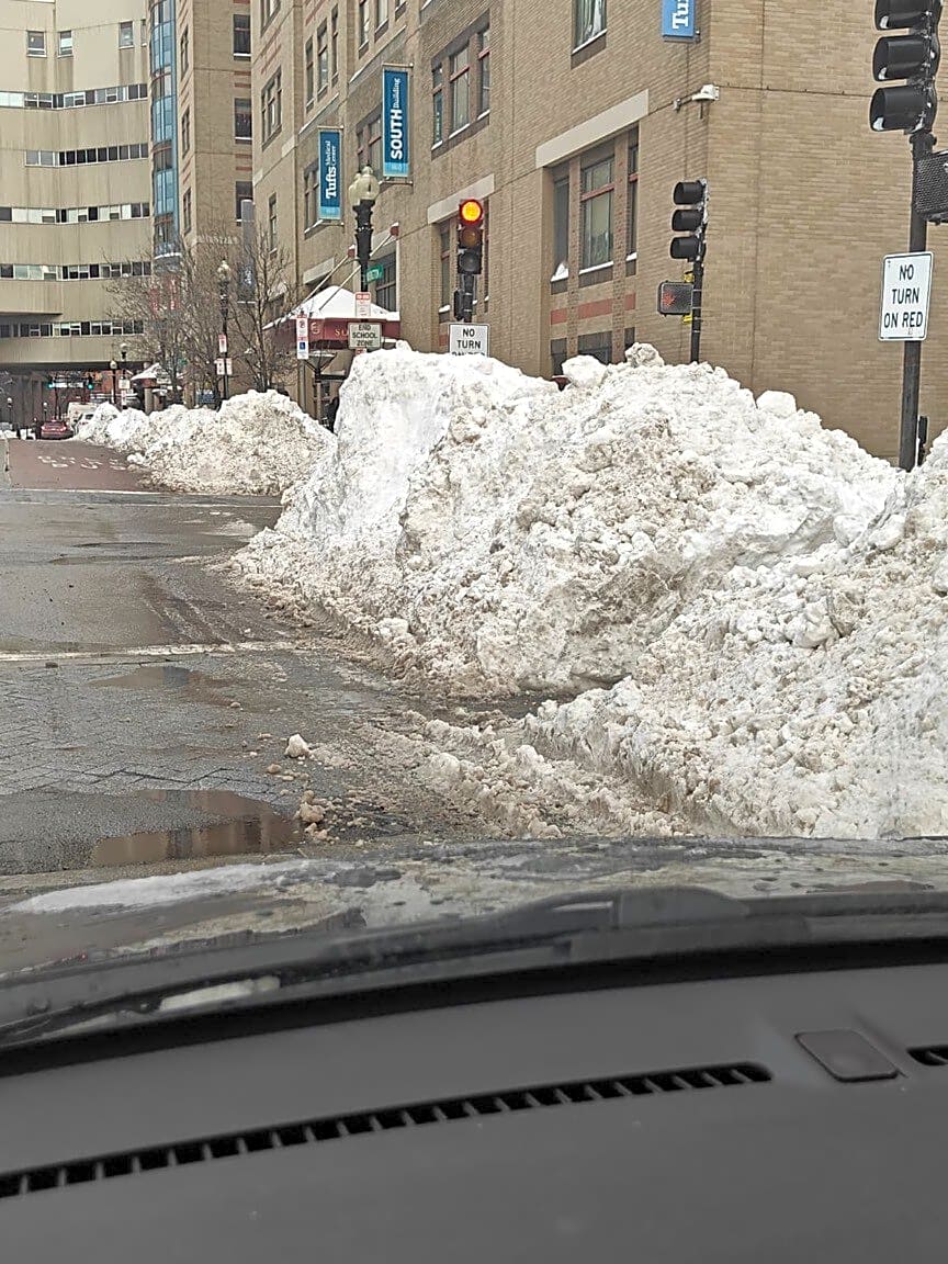 Intersection Of Oak St W And Washington St, Boston, MaHow come the city did not remove snow overnight? Hazard for everybody