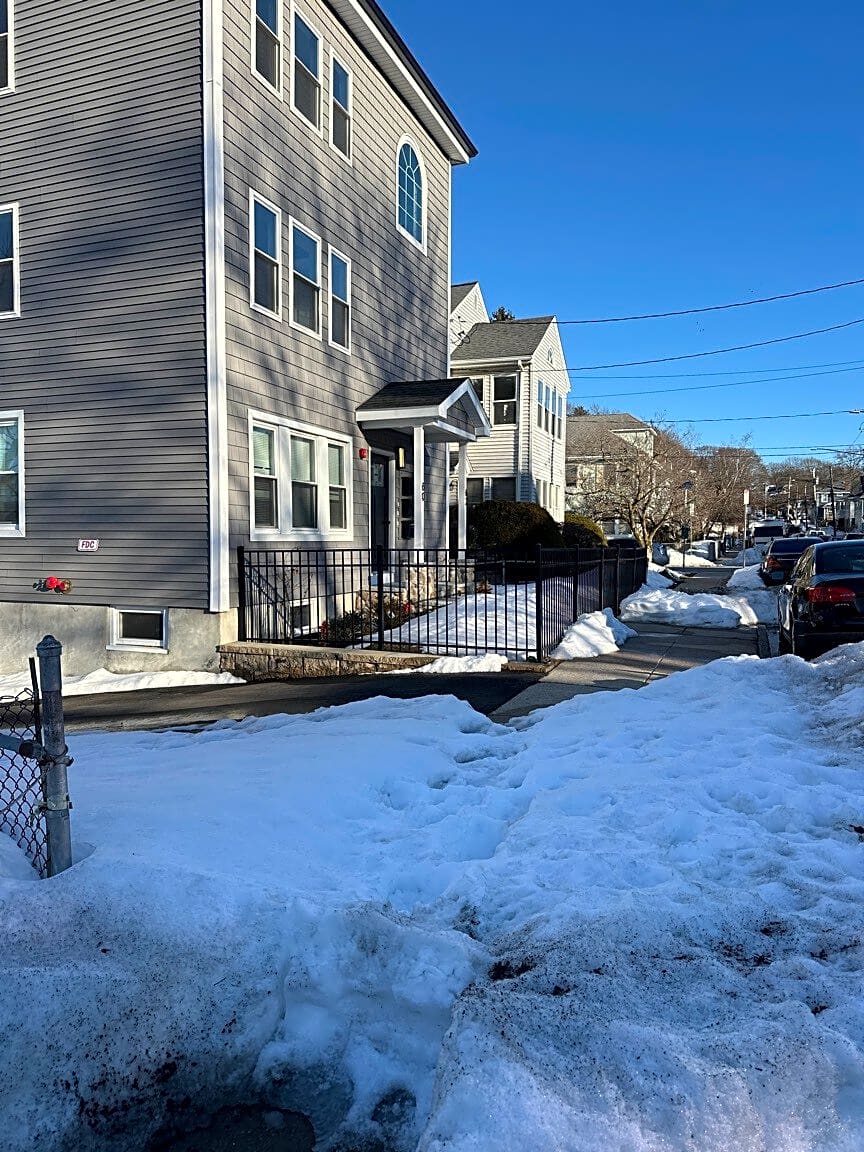 440 washington street brighton ma 02135 Thick ice Slippery No salt Everyone falling kids getting off school