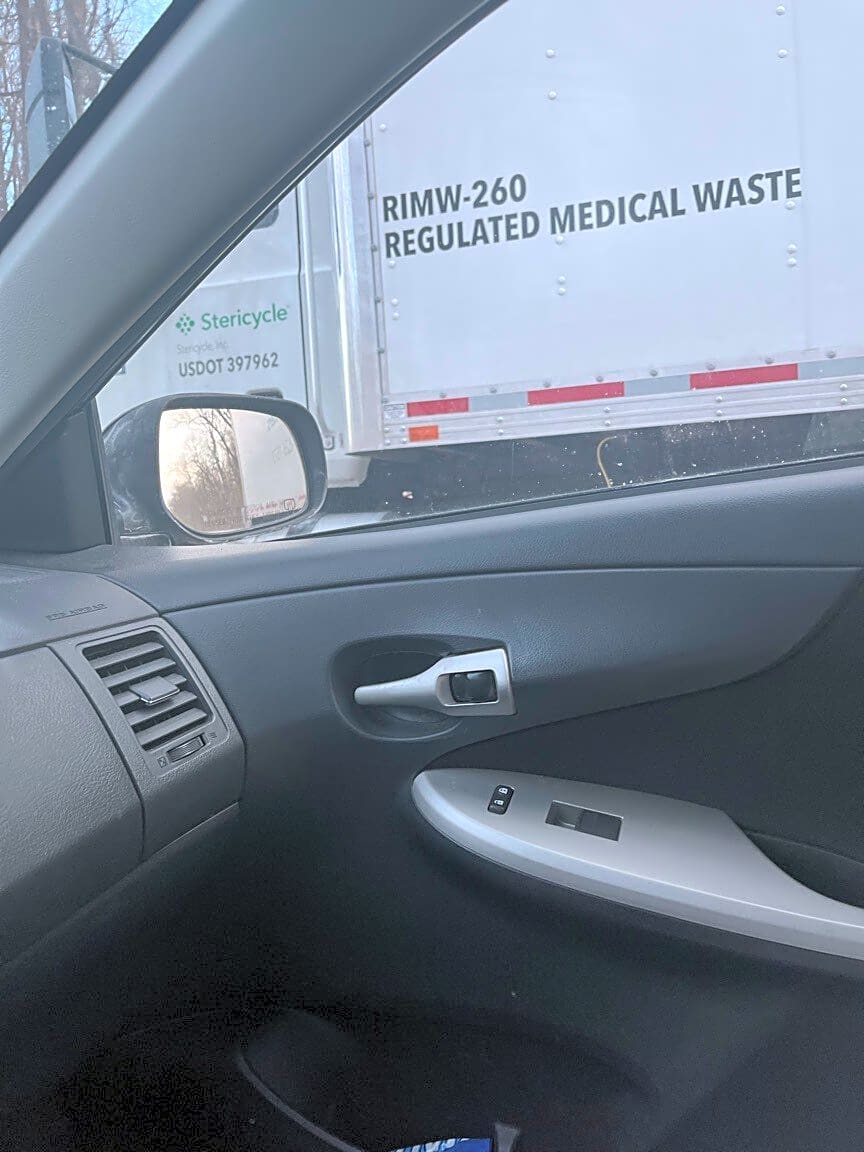 Intersection Of Cemetery Rd And Morton St And Forest Hills Ave, Jamaica Plain, MaSnow on large truck roof. 2/10/2026 on the Arborway 7:30am