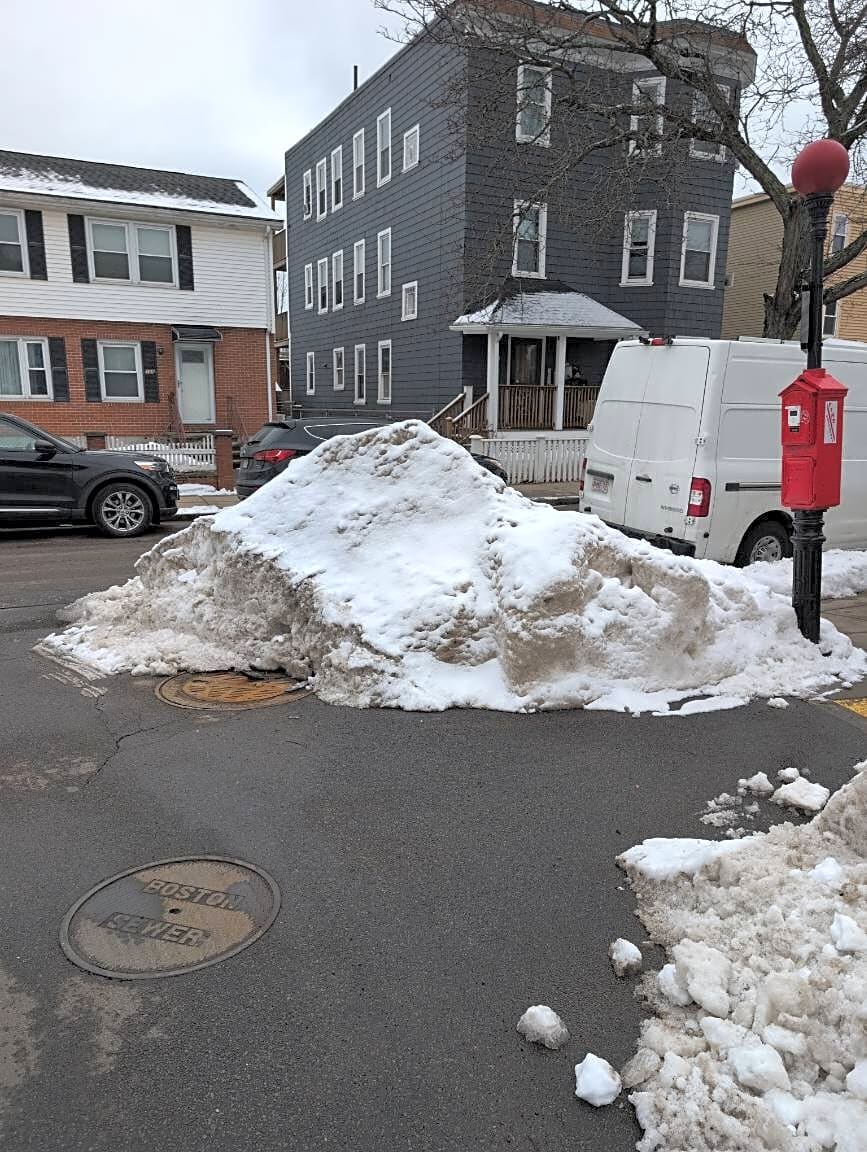 Intersection Of Harbor View St And Spring Garden St, Dorchester, MaWe are hoping to remove the pile of snow from the intersection of 81 Harborview Street and Sudan before the storm arrives.