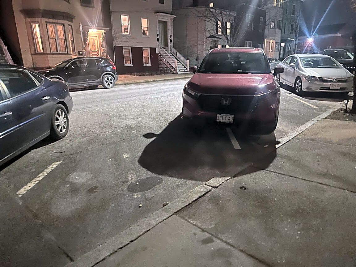 472 Sumner St, East Boston, Ma, 02128Car is taking up two diagonal parking spaces intentionally. This is happening every day.