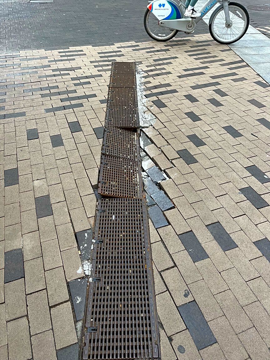 Intersection Of Summer St And Atlantic Ave, Boston, MaBroken bricks/vent on Dewey plaza near T entrance