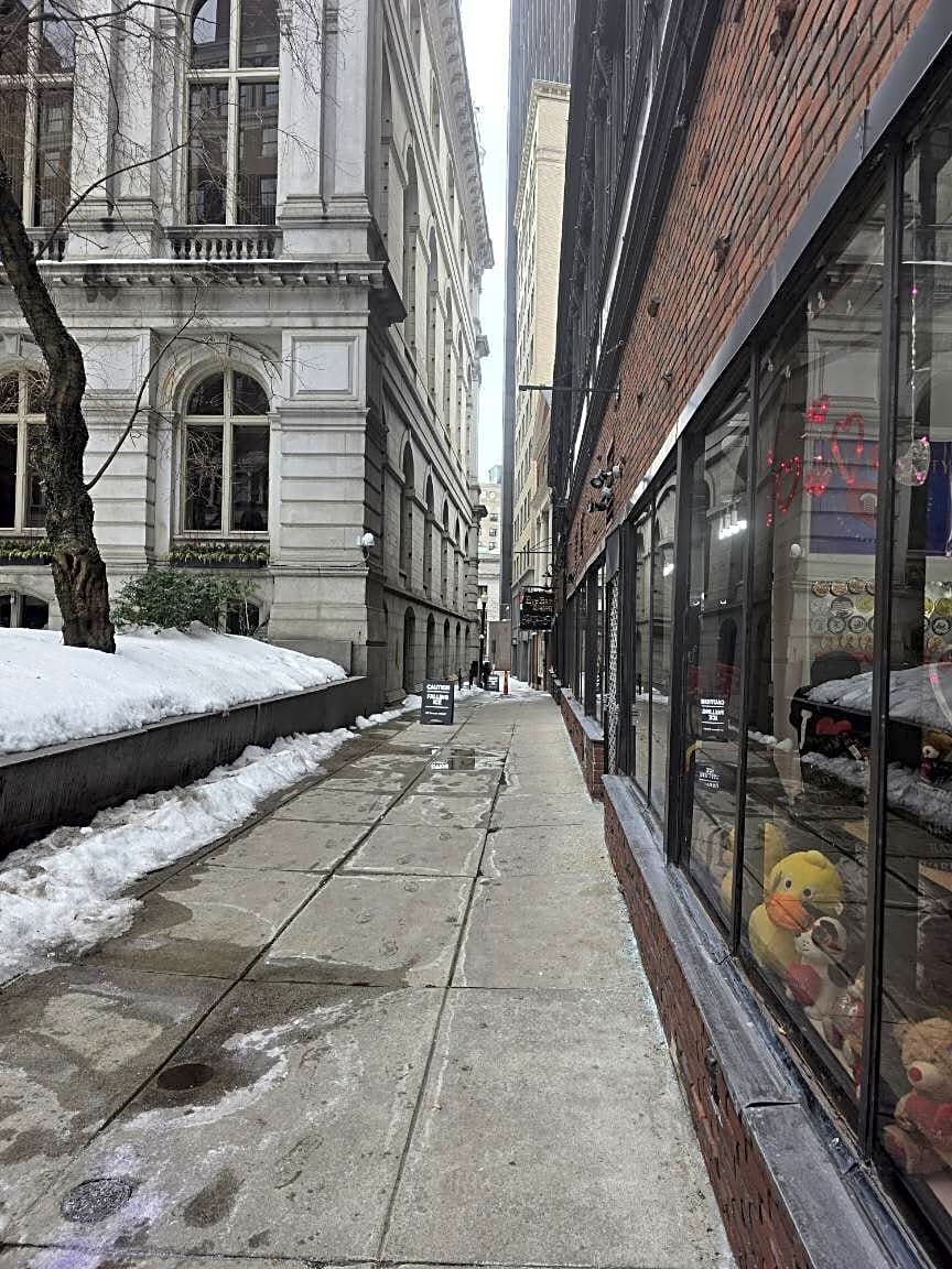 10 City Hall Ave, Boston, Ma, 02108Ice falling. Very dangerous. The ice needs to be pushed down. The sign won't save anyone.