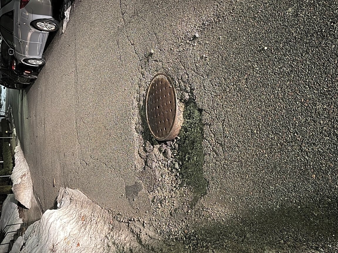 84 Kilsyth Rd, Brighton, Ma, 02135Large pothole with sewer grate exposed, caused flat tire