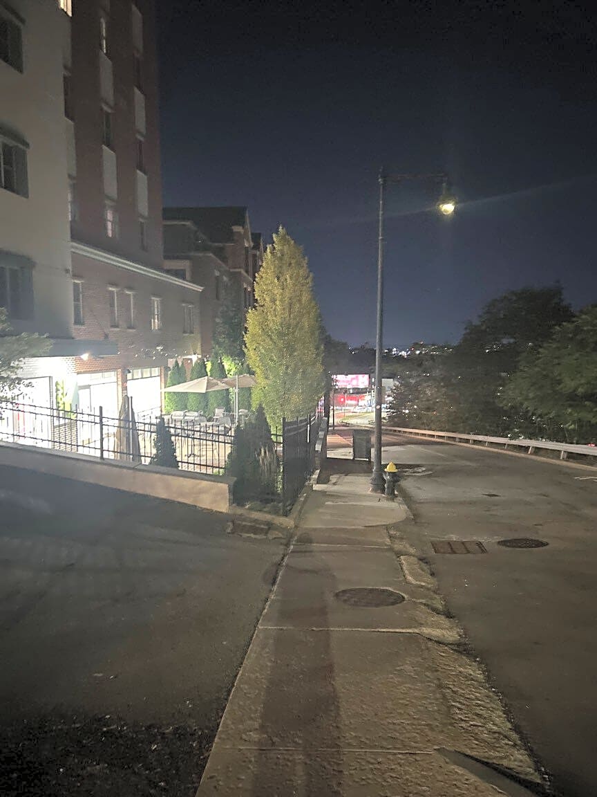 Two lights on Comm Ave are broken. One is completely off and the other is very dull. This is close to 1501 Comm Ave