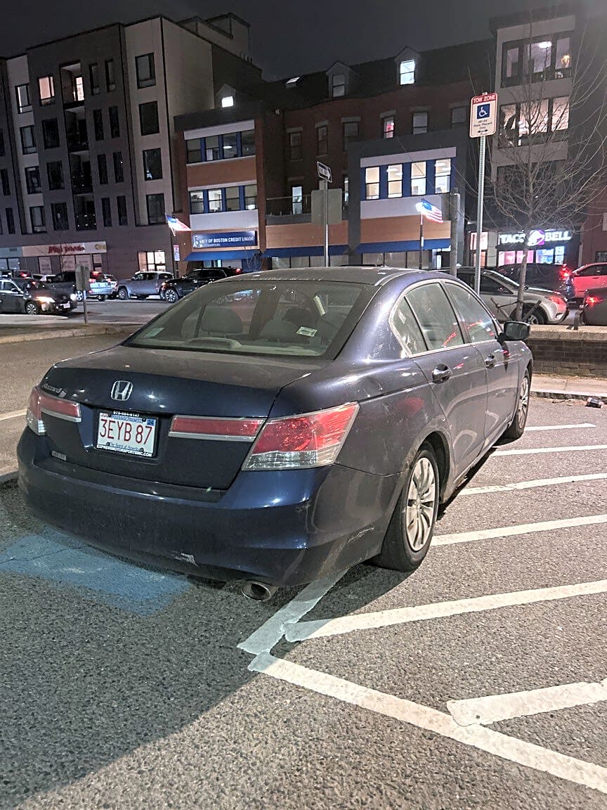 446 456 W Broadway , South Boston, Ma, 02127Parked in a handicap spot without a handicap, placard or handicap plate.