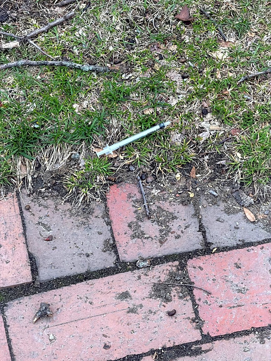 550 Massachusetts Ave, Roxbury, Ma, 02118Needle in the grass by the brick walkway. No cap. In Chester Park.