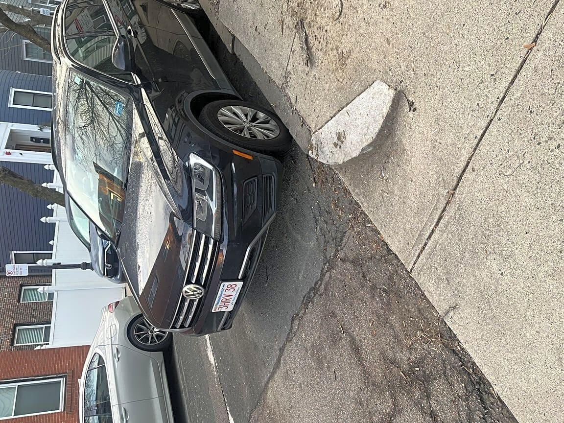 413 Main St, Charlestown, Ma, 02129Deeded parking spot being blocked at curb cut out , entrance and exit. Zero buffer given.
