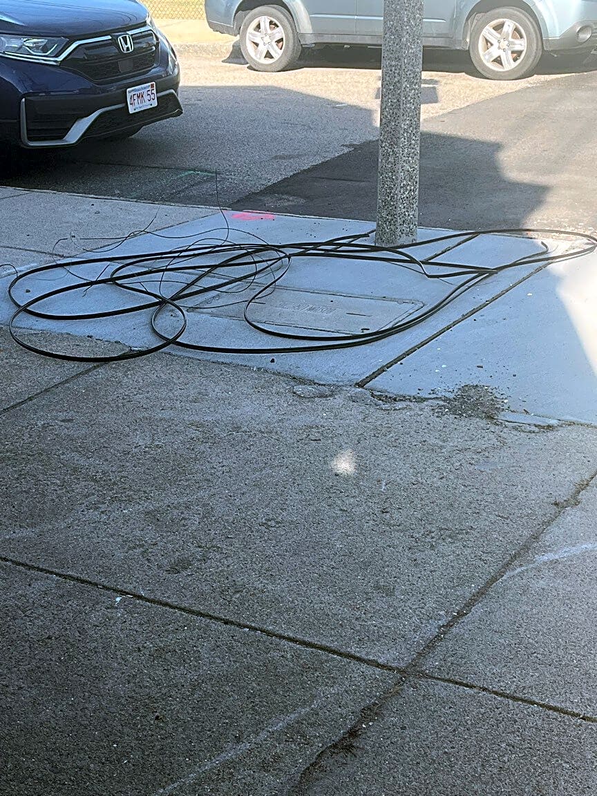 Intersection Of Easton St And N Harvard St, Allston, MaCut wires left on sidewalk at the intersection of N. Harvard and Bayard Street.