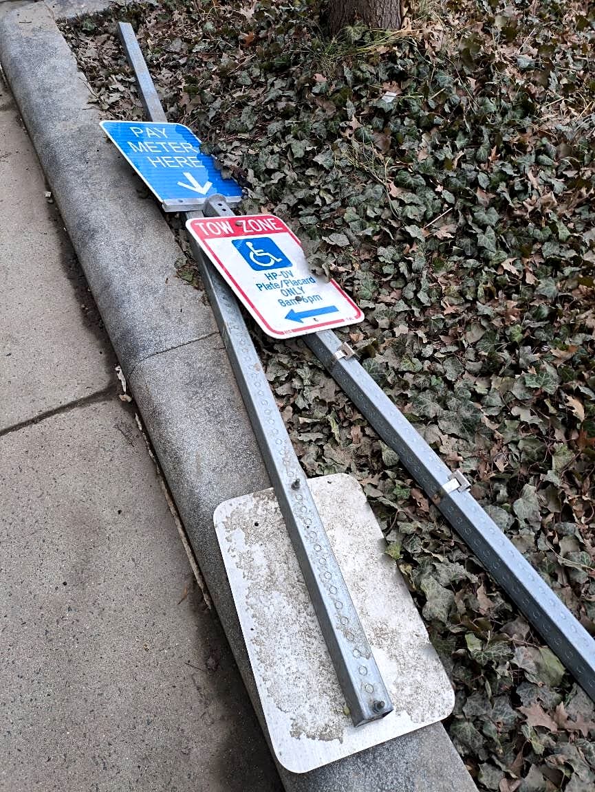 Parking Poles and signs on side walk, near 855 com ave