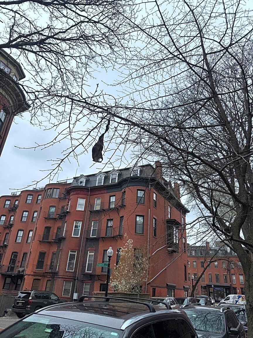 Ivanhoe St & Upton StPlastic bag stuck in city tree for 2 months. About 15 feet above street.