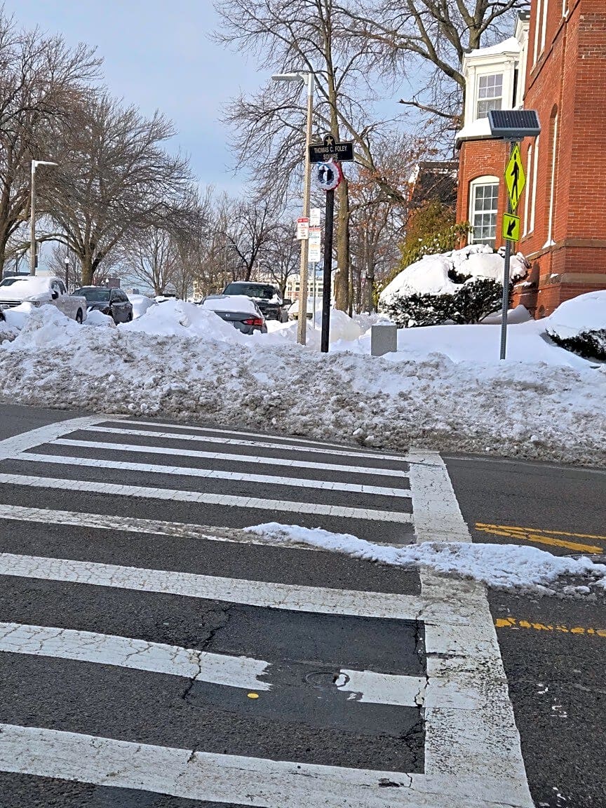 Intersection Of N St And E Broadway, South Boston, MaNo snow removal done at N and E Broadway children cross at all four corners this is a safety hazard