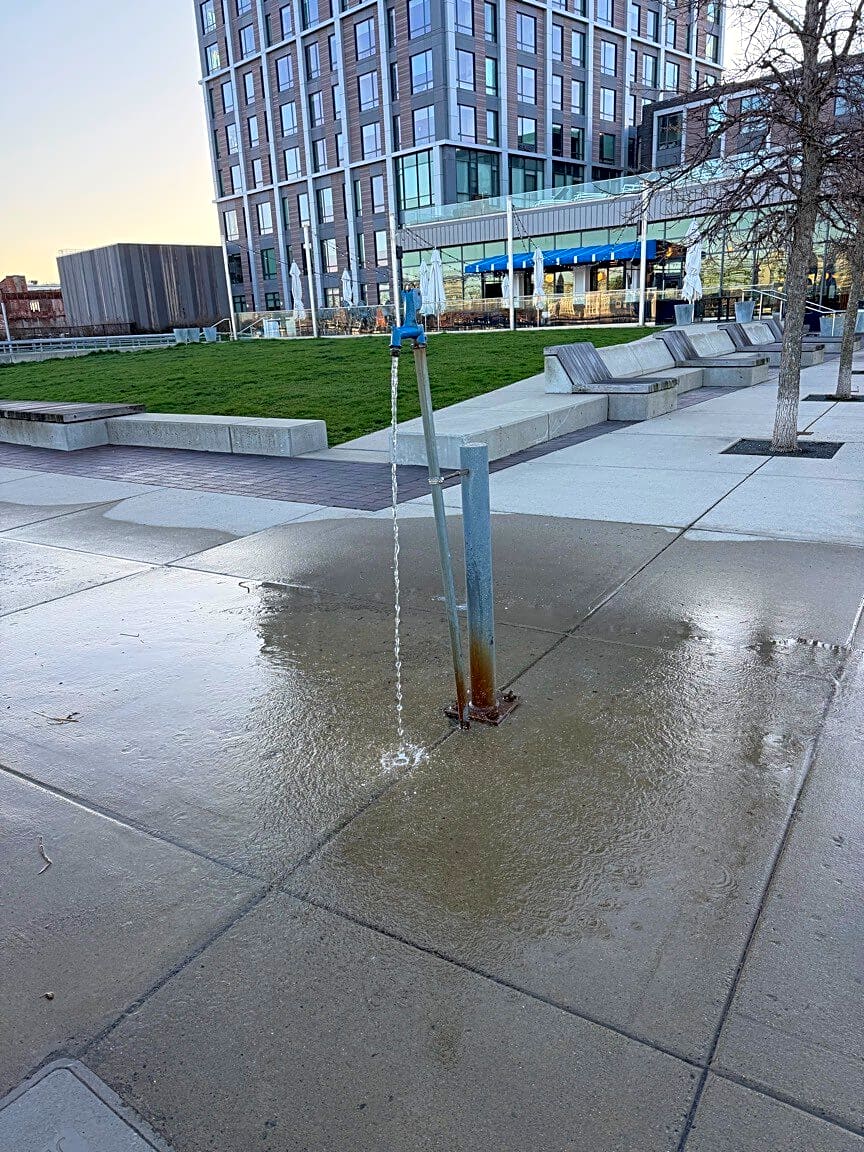 8 New St, East Boston, Ma, 02128Waterspout has running water. No clear way to turn off.