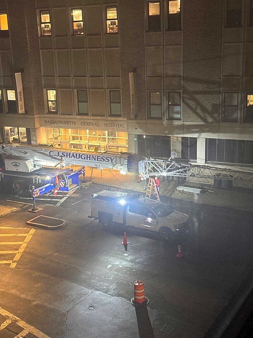 Intersection Of Blossom St And Emerson Pl, Boston, MaThere is some work going on starting from 5 AM in the morning on 01/18/2026. Although it is not particularly loud - there is ample noise created by truck moving, people talking/shouting loudly and the construction and hammer noises. This is specially disturbing for early Sunday morning. I wanted to check if these people doing the construction have some sort of a permit? The work is happening on Blossom St in front of MGH hospital.