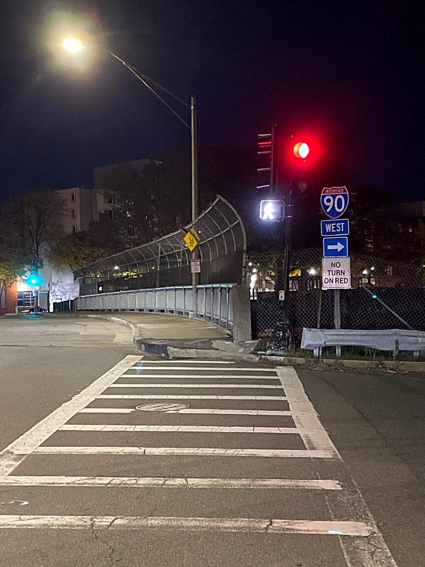 Intersection Of Marginal Rd And Arlington St, Boston, MaNo ramp at far side of crosswalk