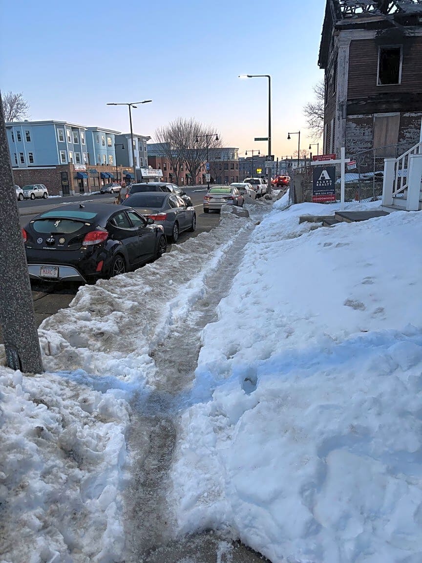 683 Columbia Rd, Dorchester, Ma, 02125Another case of a developer not clearing their sidewalk, it is now icy and treacherous for any pedestrian please ticket this property until they have addressed thr problem
