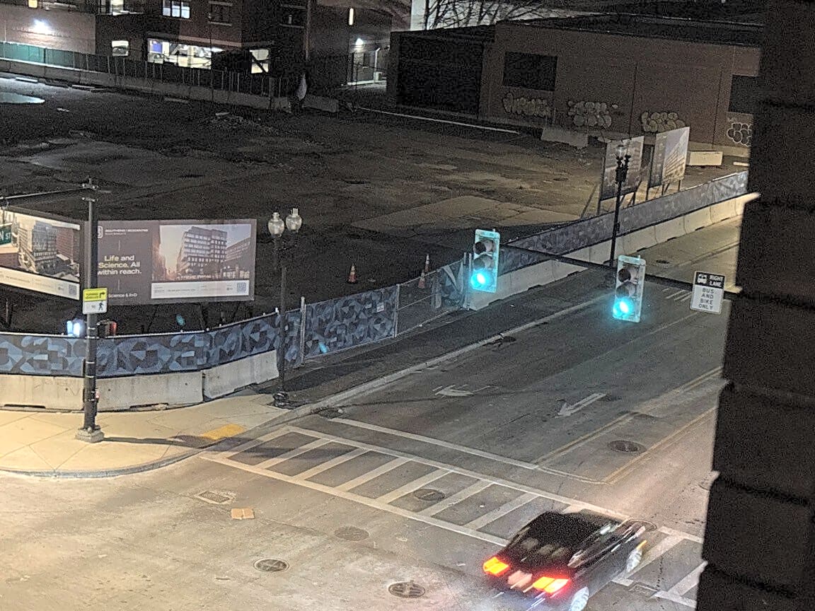 E Berkeley St & Washington StNow street light that was blinking is out and two across the street going down Washington Street towards downtown