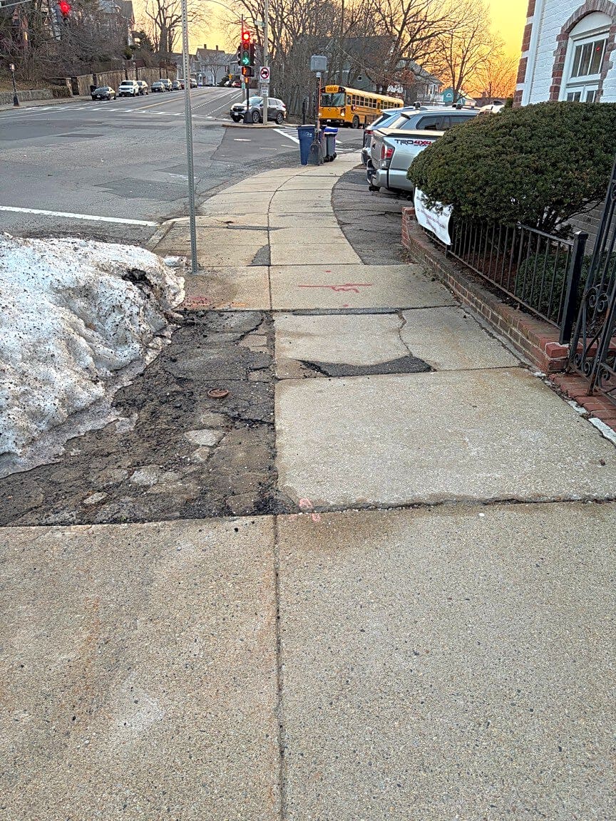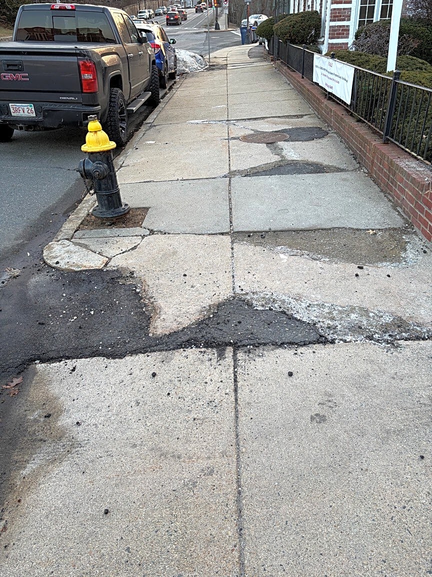 1646 Centre St, West Roxbury, Ma, 02132Broken sidewalk at 1646 Centre St. WR, follow up to case no. 101005952674 filed a year ago; no action.