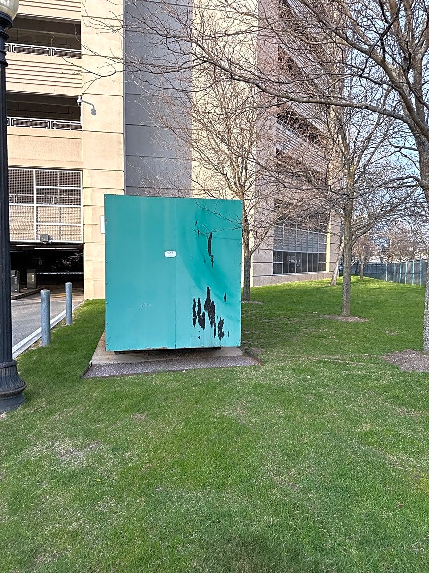 610 Albany St, Roxbury, Ma, 02118Needle on ground behind green generator on Biosquare Drive