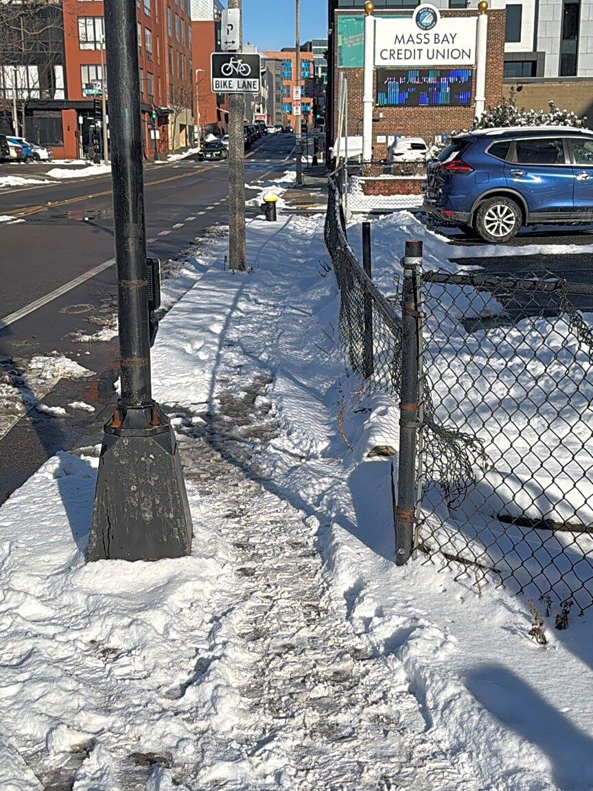 Intersection Of A St And Dorchester Ave, South Boston, MaSidewalks by Mass Bay Credit Union again not cleared.