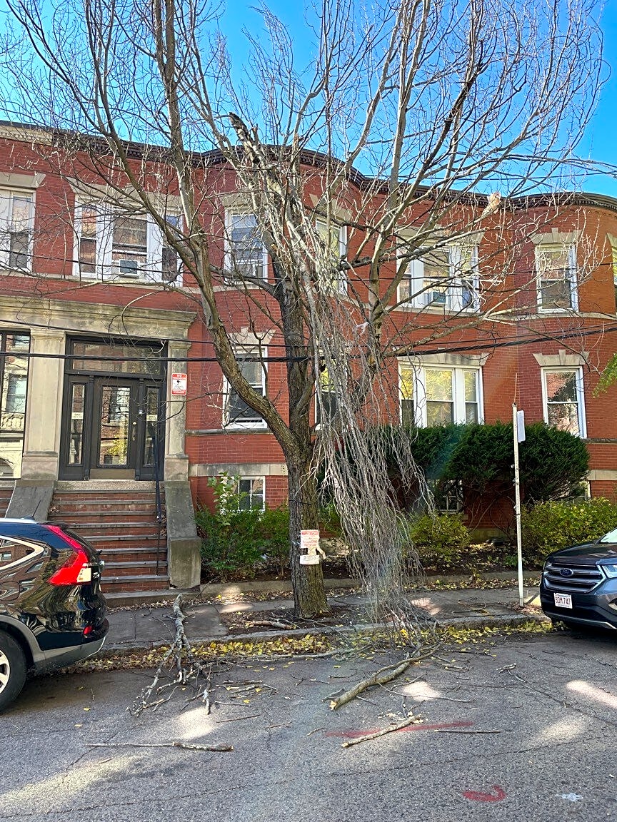 3 Ayr Rd, Boston, MA 02135Large section of tree broken off during high winds. Hanging on power lines, and branches in the street